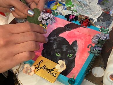 This workshop was led by artist Marilyn Oliveras de Oritz. Together, we decorated Nicho boxes for our loved ones.